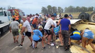 Fue entonces que en cuestión de minutos comenzaron a arribar decenas de vecinos que rodearon la escena del choque, y mientras las autoridades llevaban adelante el corte total de la ruta durante varias horas, empezaron el saqueo.