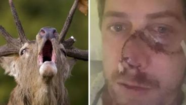 El animal se cruzó e hirió a Vincent Saubion mientras intentaba escapar durante una expedición de caza en Lesperon, Francia. El ciervo de 150 kilogramos le quitó al hombre una importante capa de piel debajo de su ojo, nariz y a lo largo de su mejilla.
