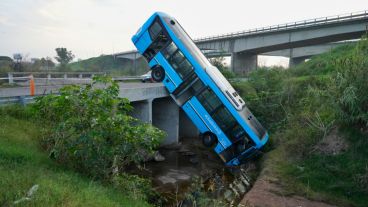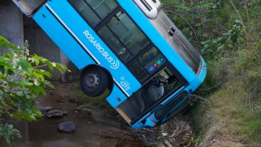 Este miércoles por la noche un colectivero de Rosario Bus que regresaba su unidad al galpón cayó al arroyo Saladillo y el vehículo quedó atascado desde entonces, suspendido entre el asfalto y el agua, custodiado por un guardia de la empresa. El chofer fue trasladado a un centro de salud con politraumatismos pero sin heridas de gravedad.