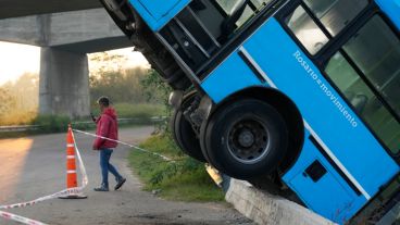 Según informó El Tres desde el lugar del accidente, en la autopista Rosario-Buenos Aires a la altura del arroyo, el hecho ocurrió este miércoles cuando el chofer cerraba su turno y devolvía el colectivo al galpón de la empresa. Cerca de las 22.50 chocó contra el guardarrail y quedó atascado en la zanja.