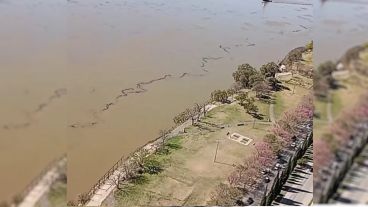 En la mañana del miércoles, un buque tuvo una pérdida de aceite del motor en un puerto de San Lorenzo, el líquido se fue derramando y llegó hasta Rosario. Una mancha negra en forma de serpiente fue recorriendo toda la costa.