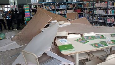 Después del primer desprendimiento, personal del ministerio de Educación ordenó la evacuación del edificio y se procedió a trabajar sobre toda la estructura metálica que sostenía el cielo raso con los que, en 2017, se renovaron los viejos galpones ferroviarios donde ahora funciona la escuela.