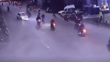 En las imágenes, difundidas por el portal marplatense 0223, se observa a la caravana de motos circular sobre su carril hasta que una de ellas se abre hacia su izquierda justo cuando el Corsa blanco aparece de frente. En ese momento se produce el primer toque con el coche.