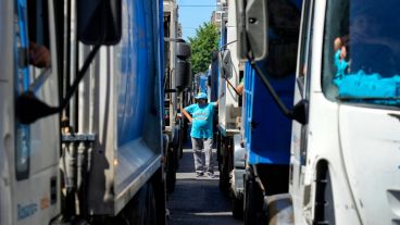 Faltan quince minutos para las 12 de este miércoles de paro general y una caravana de camiones recolectores de basura que viene desde Corrientes y Pellegrini satura las calles de la ciudad. Impacta ver las cuadras y cuadras de vehículos, con los trabajadores al volante o a pie, algunos incluso que ceden al cansancio y al sol.