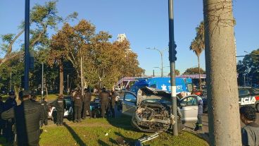 La violencia del impacto fue tal, que el semáforo, contra el que dio uno de los coches, quedó tendidos sobre el cantero central.