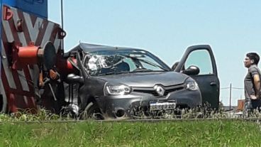 El auto es un Renault Clio gris oscuro que, de acuerdo a versiones preliminares, oficiaba de remís. Por razones que se investigan, la locomotora lo embistió casuándole graves daños sobre todo en la parte frontal y lateral derecha.