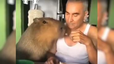En el clip que compartió un usuario de Twitter se puede ver a un carpincho sentado a la mesa y atento a un tenedor que le acerca quien parece ser su dueño.