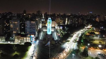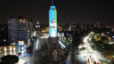 El Monumento a la Bandera se vistió de Lionel Messi este viernes a la noche, en la previa a la final de Copa América que la selección argentina, y su capitán, disputarán este sábado ante Brasil en Río de Janeiro.