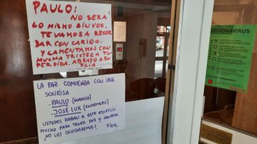 Vecinos que habitan en uno de los edificios más populoso del centro despidieron con carteles al guardia quien falleció tras contagiarse coronavirus. El fin de semana colgaron mensajes cariñosos en los que destacaron todas sus virtudes: era un hombre respetuoso que supo cumplir su trabajo con amabilidad y eficacia.