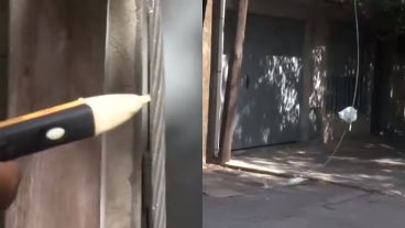 Vecinos de calle Chela Silva al 5000 (entre Paraguay y Gutierrez) están alerta por un cable electrificado colgando sobre vereda. Desde el lugar, El Tres mostró cómo un vecino mostraba que el cable estaba electrificado con un busca polo.