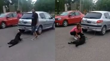 En las imágenes se aprecia cómo la mujer ató con una cadena a su perro a un Peugeot 206, manejó a unos 60 kilómetros por hora y arrastró a su mascota unas siete cuadras hasta que detuvo la marcha.