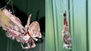 Las imágenes mostraban al pájaro envuelto en una telaraña y colgando de su cola. “Increíble … arañas atrapando pájaros”, dijo el hombre muy impactado por la escena. “Esa es la araña que se come al pájaro o chupa lo que queda”, prosiguió, según publicó Mitre.
