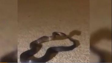 En el video están todos los que habitan la casa bastante cerca del animal que los sorprendió, si bien parecen estar relajados no pudieron negar del terrible susto que tuvieron apenas se la encontraron. El reptil se mueve con tranquilidad para todos lados y su característica lengua no para de salir y entrar a su boca.