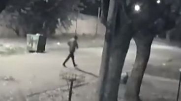Una de las cámaras de seguridad que fueron instaladas por los vecinos de Balcarce y Caseros, en donde ocurrió el intento de entradera, registró el momento en el que un delincuente que caminaba por la calle comenzó a correr en dirección hacia la puerta de una vivienda y le dio una patada con la intención de abrirla.