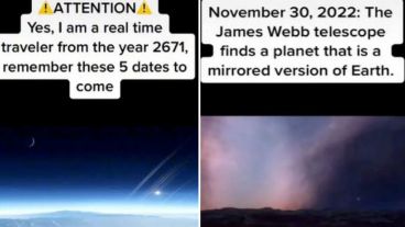 El clip, que recibió miles de "me gusta", dice: "¡ATENCIÓN! Sí, soy un viajero en el tiempo real del año 2671, recuerda estas cinco fechas por venir. 30 de noviembre de 2022: el telescopio James Webb encuentra un planeta que es una versión reflejada de la Tierra. 8 de diciembre de 2022: Un gran meteorito golpea la Tierra que contiene nuevos tipos de metales y especies alienígenas. 6 de febrero de 2023: un grupo de 4 adolescentes descubre ruinas antiguas y un dispositivo que abre un agujero de gusano a otras galaxias. 23 de marzo de 2023: un equipo de científicos que explora la Fosa de las Marianas encuentra especies antiguas.15 de mayo de 2023: un megatsunami golpea la costa oeste de los Estados Unidos, principalmente San Francisco".