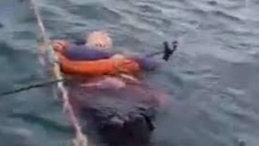 En un vídeo se ve a la mujer flotando en el agua y sin moverse mientras un pescador se dirige a ella para ayudarla. Tras lanzarle un salvavidas y arrastrarla hacia el barco, consigue subirla a la embarcación, donde visiblemente debilitada rompe a llorar.