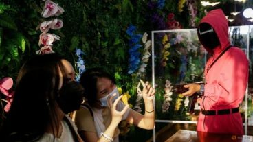 El exitoso programa de Netflix "El juego del calamar" inspiró a un café que para atraer clientes recreó algunos de los juegos de la popular serie de televisión surcoreana con el personal disfrazado como los guardias asesinos.