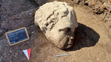 La cabeza recién descubierta es de dimensiones considerables y fue hallada en un estrato medieval, entre otros materiales antiguos que los arqueólogos siguen analizando.