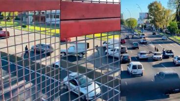 Las imágenes fueron captadas desde un puente peatonal sobre la avenida General Paz ubicado a pocos metros del lugar por el que el hombre intentó cruzar.