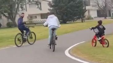 Lionel Messi disfruta de sus vacaciones en familia, en su casa del barrio privado Kentucky de la vecina Funes, alejado, en lo posible de los flashes. Pero la vida del campeón del mundo no pasa desapercibida por sus vecinos que lo captaron en bicicleta con su esposa Antonela Roccuzzo y uno de sus hijos.