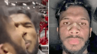 Newas Sharif, de 27 años, estaba mostrando sus músculos en el gimnasio cuando se desmayó y se golpeó la cara contra el vidrio. El clip del desafortunado incidente rápidamente se volvió viral en TikTok.