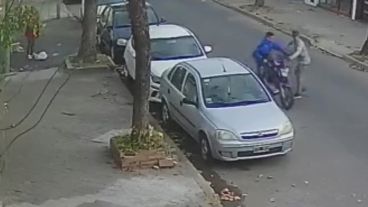 Según el video de la cámmara de seguridad, el violento hecho ocurrió a las 17.52 de este domingo en Leguizamón al 1000, muy cerca de la cancha de Rosario Central.
