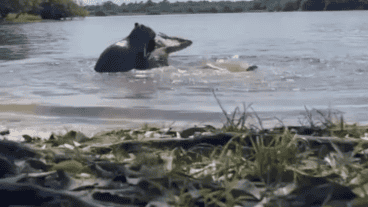 Según publicó el medio británico The Mirror, la mujer intentó defenderse levantando el dedo para advertir al animal, pero este no se detuvo. Un hombre que se encontraba en la orilla del lago acudió en su ayuda, armado con un palo grueso, y logró sacar a la mujer del agua.