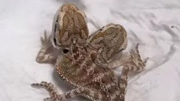 En el clip, se ve la cabeza izquierda del dragón barbudo comiendo un insecto de un par de tenazas. El creador del video confirmó que ambas cabezas pueden comer y que el defecto del lagarto no parece haber afectado su movilidad.