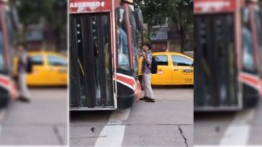 En el video se observa al hombre parado en medio de la calle, delante del colectivo, que no detuvo su marcha porque estaba al máximo de su capacidad.
