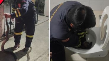 El hombre trató de atrapar a la serpiente antes de pedir rápidamente refuerzos. Sobre el hecho contó que se sentó y luego se dio cuenta de la inesperada vivitante: "me senté y luego sentí que algo me empujaba el trasero. Fue entonces cuando miré hacia abajo y vi la serpiente".