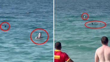 Las imágenes de video capturaron al tiburón nadando a lo largo de una cost muy popular entre los kitesurfistas y parece dirigirse hacia una mujer que nada sola. Luego se puede escuchar a un salvavidas tratando desesperadamente de alertarla antes de que el tiburón se acerque sigilosamente.
