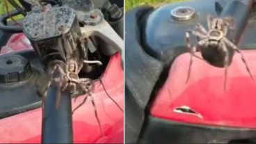 Metui Tongatua descubrió que una araña cazadora había ingresado a su moto y decidió filmar el tenso momento que finalizó con un terrible susto con su cámara celular. El animal le saltó sin previo aviso.
