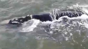 Un grupo dedicado al avistamiento de animales en la costa uruguaya difundió las imágenes de una ballena austral y su cría, que andaban a 300 metros de la orilla.