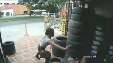 Un nuevo video viral se compartió cuando en unas imágenes se observa cómo una mujer que caminaba por la calle colombiana en Cali, reacciona ante el empleado de una gomería luego de que éste le profiriera con palabras obscenas.