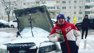 A pesar de haberse quedado sin vehículo, el automovilista pareció tomarse la situación con buen humor y fue fotografiado sonriendo y bebiendo una cerveza apoyado sobre el capó, según RT.