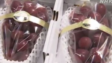 Durante una subasta en el Mercado Mayorista Central de Kanazawa, situado en la prefectura japonesa de Ishikawa, un racimo de uvas de lujo Ruby Roman por 10.800 dólares, estableciendo un nuevo récord.