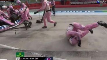 En las imágenes se pudo ver el momento en el que el canadiense de 22 años llegaba excedido de velocidad a la zona de parada y derribó al asistente que esperaba de frente. Éste, para amortiguar el golpe, se lanzó hacia atrás causando la preocupación de sus colegas.