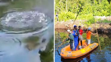 En un video impactante, se puede ver al hombre pateando y gritando mientras el cocodrilo lo arrastra por el río. Se puede escuchar a un hombre decir: "Dios mío, el cocodrilo se comió al hombre".