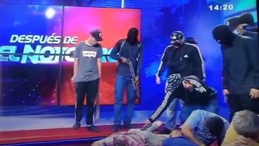 La transmisión en vivo muestra a los periodistas y trabajadores del medio, amenazados con armas y explosivos.
