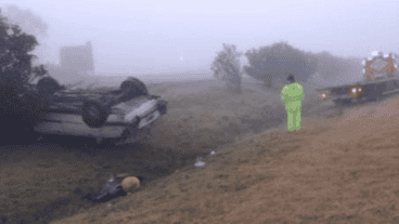 Un automóvil volcó este domingo a la madrugada en la autopista Rosario – Córdoba en momentos en que la densa niebla reducía al máximo la visibilidad en la región. A pesar del impresionante del siniestro vial, el conductor del coche resultó ileso.