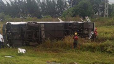 Un colectivo especial volcó este domingo por la mañana en la autopista Rosario-Santa Fe a la altura del kilómetro 15. En el accidente, dos hombres resultaron gravemente heridos y fueron trasladados pero murieron más tarde en diferentes hospitales.