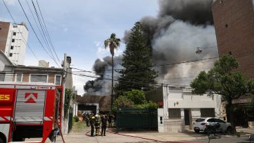 "El techo colapsó antes del arribo de la dotación. El incendio está en el centro de manzana. No sabemos con precisión las dimensiones del lugar porque la carga de fuego es muy grande", comentó.