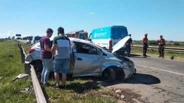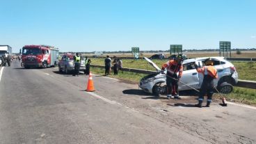 Dos personas resultaron heridas luego de que auto en el que transitaban por la autopista Rosario Córdoba diera varios vuelcos. El accidente se registró este domingo por la mañana a la altura del kilómetros 303, cerca del arroyo Ludueña.