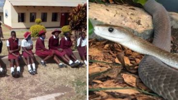 Una mamba negra que entró en un aula de estudiantes adolescentes en Zimbabue, África y mordió a un joven de 17 años que murió 20 minutos después. Melody Chiputura sintió "un aguijón" en el muslo y lo levantó para llamar la atención de la maestra cuando finalmente se percató de la serpiente.
