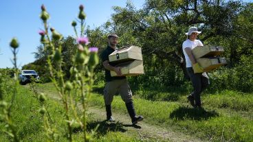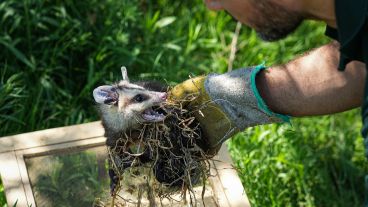 Unos ceibos a un costado del camino de tierra son la segunda posta para las zarigüeyas. Los dos especialistas se ponen los guantes. Las cajas tienen carteles escritos a mano. Dicen, por ejemplo, “4 comadrejas”. Algunos vienen con aclaración: “2 comadrejas (bravas)”.
