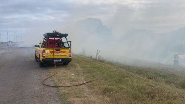 En la tarde del miércoles dos dotaciones de bomberos trabajaron en sofocar las llamas de un incendio de grandes magnitudes que se dio a lo largo de unos mil metros lineales en una zona descampada pero muy cerca de un bosque, al que afortunadamente no llegaron las llamas.
