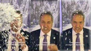 Daniel Scioli aparece en un video en el que le tiran bolitas de telgopor en la cara, con la intención de hacerlas pasar por nieve, mientras incentiva a brasileños a visitar Bariloche. En su rol de secretario de Turismo y Ambiente, explica que los centros de esquí "están preparados como nunca".