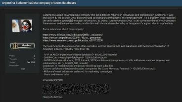Por su parte, el periodista y programador Maximiliano Firtman también se refirió al episodio. “Grave filtración de datos. Ciberdelincuentes publicaron en la Dark Web una filtración de 1000 GB con info de argentinos. Hay datos actualizados al 25 de noviembre. La mayor filtración de datos personales del país. Sueldos, teléfonos, direcciones, vehículos, emails y más”, escribió en X.
