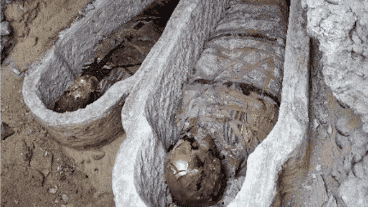 La momia masculina fue descubierta en el interior de la tumba 65 de la necrópolis de Al-Bahnasa, el yacimiento de la antigua Oxirrinco, situada a unos 305 kilómetros al sur de El Cairo. En la misma excavación también se encontraron tres lenguas de oro y una lengua de cobre: objetos que se colocaban en la boca de los muertos para que pudieran hablar con los dioses en el más allá.