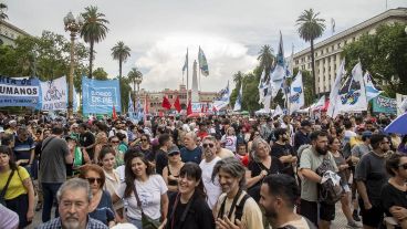 La principal central obrera, junto a otros sindicatos y organizaciones como las dos Centrales de Trabajadores Argentinas, se movilizaron desde las 15 en rechazo al proyecto que envió el presidente al Congreso.